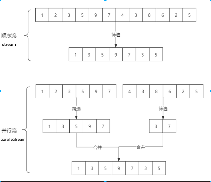 | List<String> list = Arrays.asList("hello","world","stream"); //创建顺序流 Stream<String> stream = list.stream(); //创建并行流 Stream<String> parallelStream = list.parallelStream();