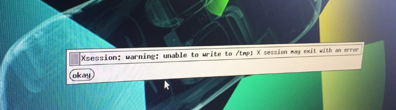 Xsession :warning:unable to write to /tmp; X session may exit with an error