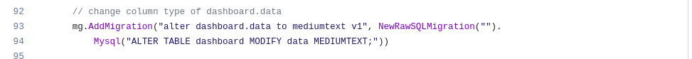 1 | ALTER TABLE dashboard MODIFY data MEDIUMTEXT; |