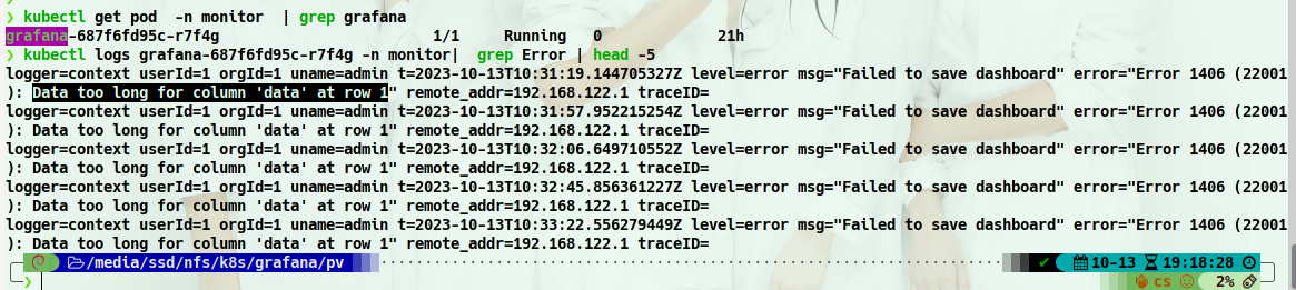 msg=”Failed to save dashboard” error=”Error 1406 (22001): Data too long for column ‘data’ at row 1” 涉及2个表数据