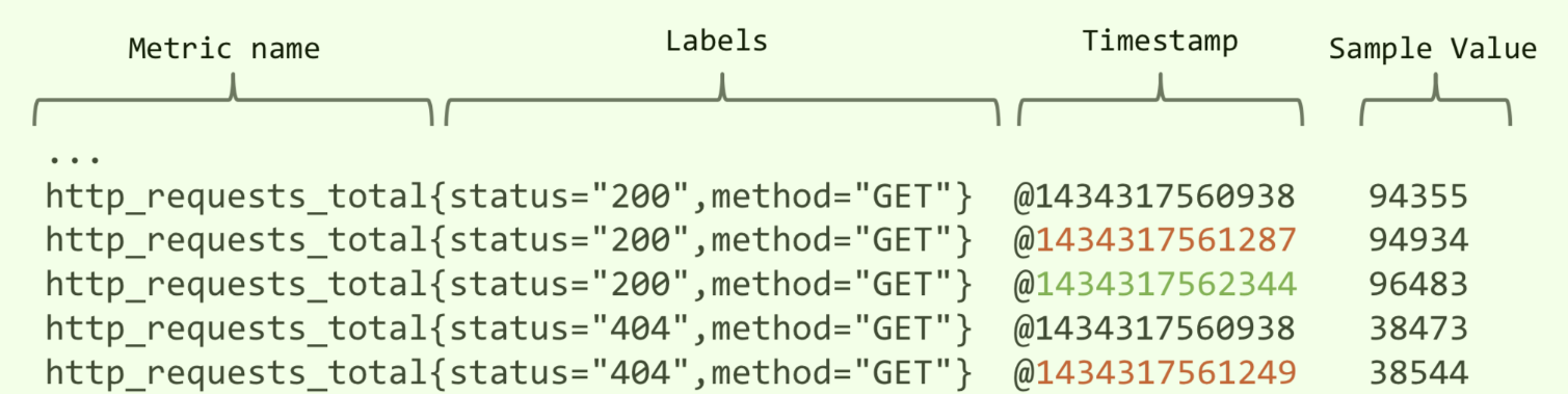 - Sample Value(采样值):实际的时间序列,每个序列包括一个 float64 的值和一个毫秒级的时间戳。