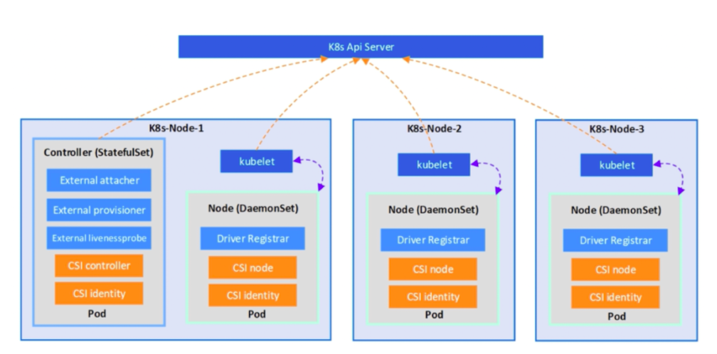 CSI Driver = Node(DaemonSet) + Controller(StatefuleSet)