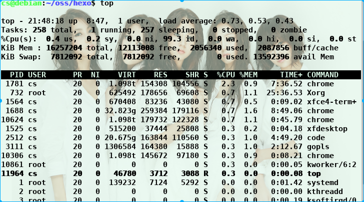 1 | cs@debian:~/go$ uptime |