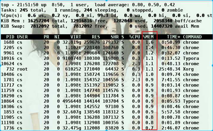 界面shift+m (根据内存排序)