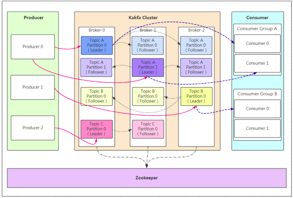 - 2.broker端通过topic副本数保证数据不丢失,同时要求生产端ack为-1