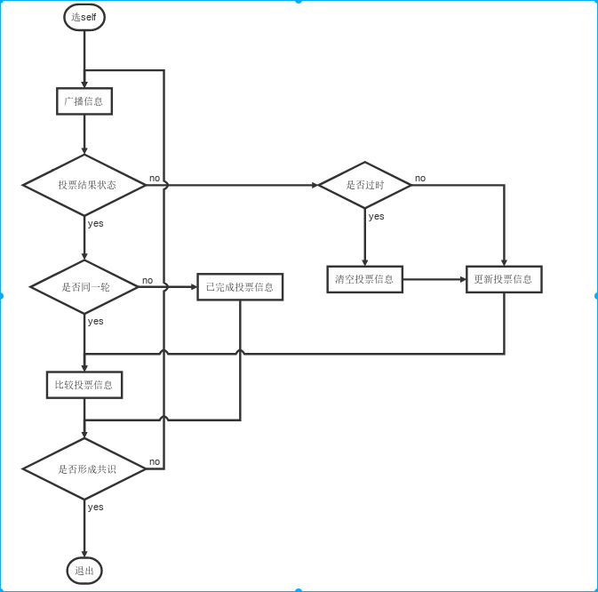 | start=>start: 选self info=>operation: 广播信息 j1=>condition: 投票结果状态