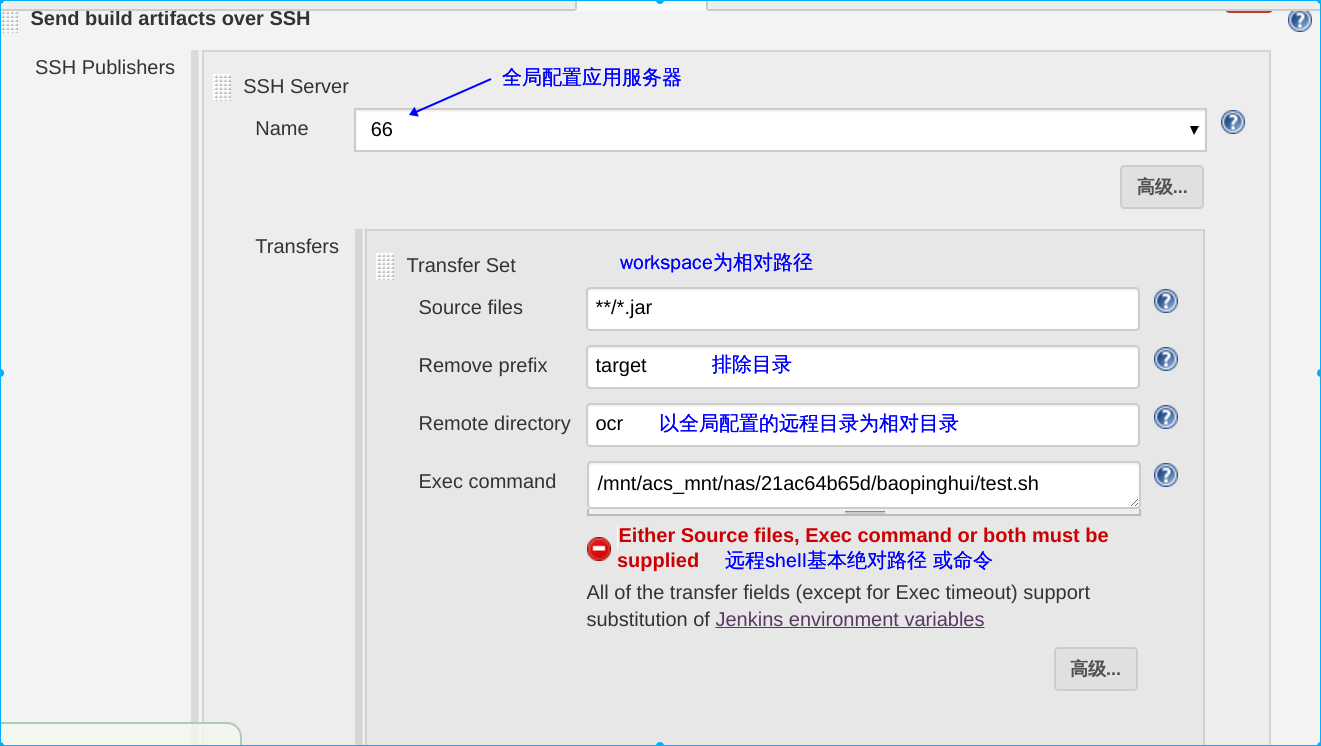 项目 Send build artifacts over SSH